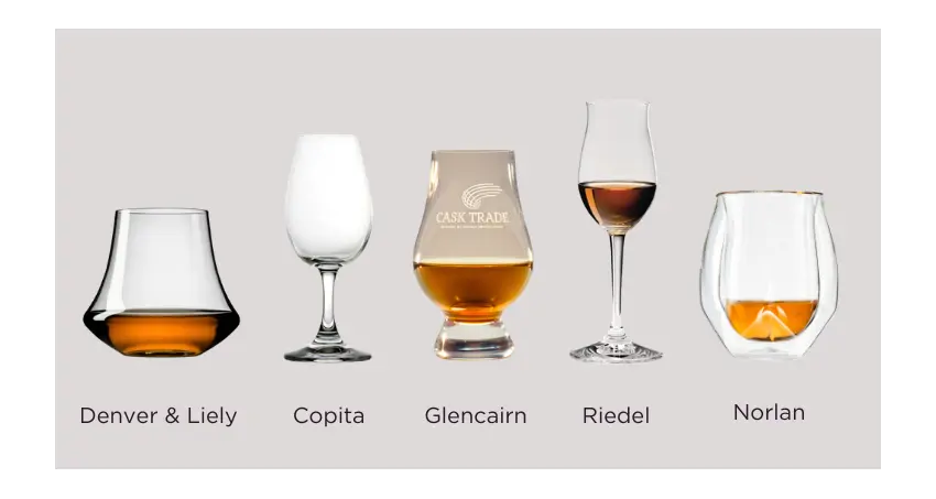 There are other whisky glasses marketed, such as the Norlan, Denver and Liely and Riedel, and these glass work very well and are perfect for gifting with the luxury element to their design. Many professional blenders us a copita or ISO (international standards organisation) glass, this is a very functional glass and as professionals are tasting many spirits at the same time, they are spice efficient and inexpensive.