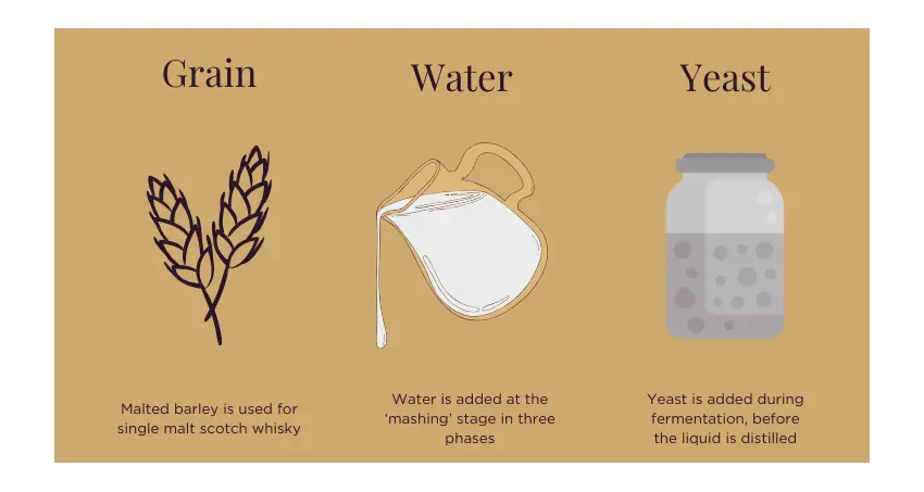 The next key ingredient is water, if there is a high mineral content in the water then this may make a difference to distillation. But it is debated how much soft or hard water changes the flavour of a whisky production, due to the high temperatures used in distillation. On the other hand, much like tea, soft water is considered better for adding to a whisky when tasting. This is due to the higher levels of magnesium and calcium in hard water which can some say from the flavour of the whisky.