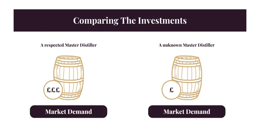 Where authenticity can drive demand, the name and reputation of the master distiller can have a big impact on the relative whisky cost when it comes to market.
