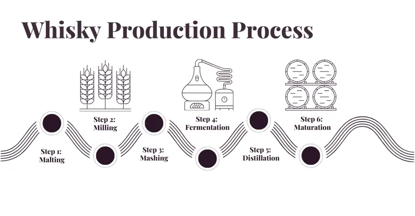 It is worth noting that there are different distillation processes depending on the style of whisky. However, there are six main stages in the process of making whisky: